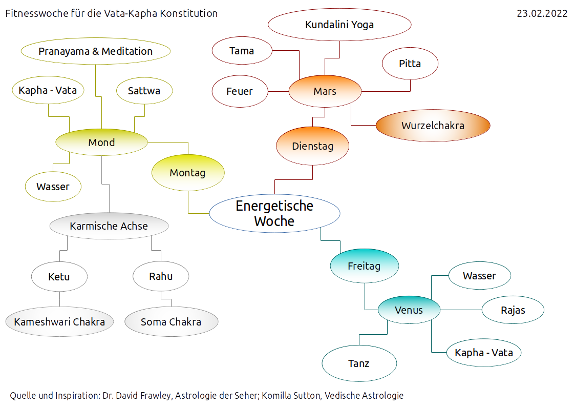 Nach der vedischen Lehre nehmen Biorhythmus, Konstitution, persönliches Umfeld und emotionale Verfassung Einfluss auf unsere Lebensenergie. Ausgewogene, saisonal bezogene Ernährung, Körperpflege und Bewegung halten Körper, Geist und Seele in Balance.