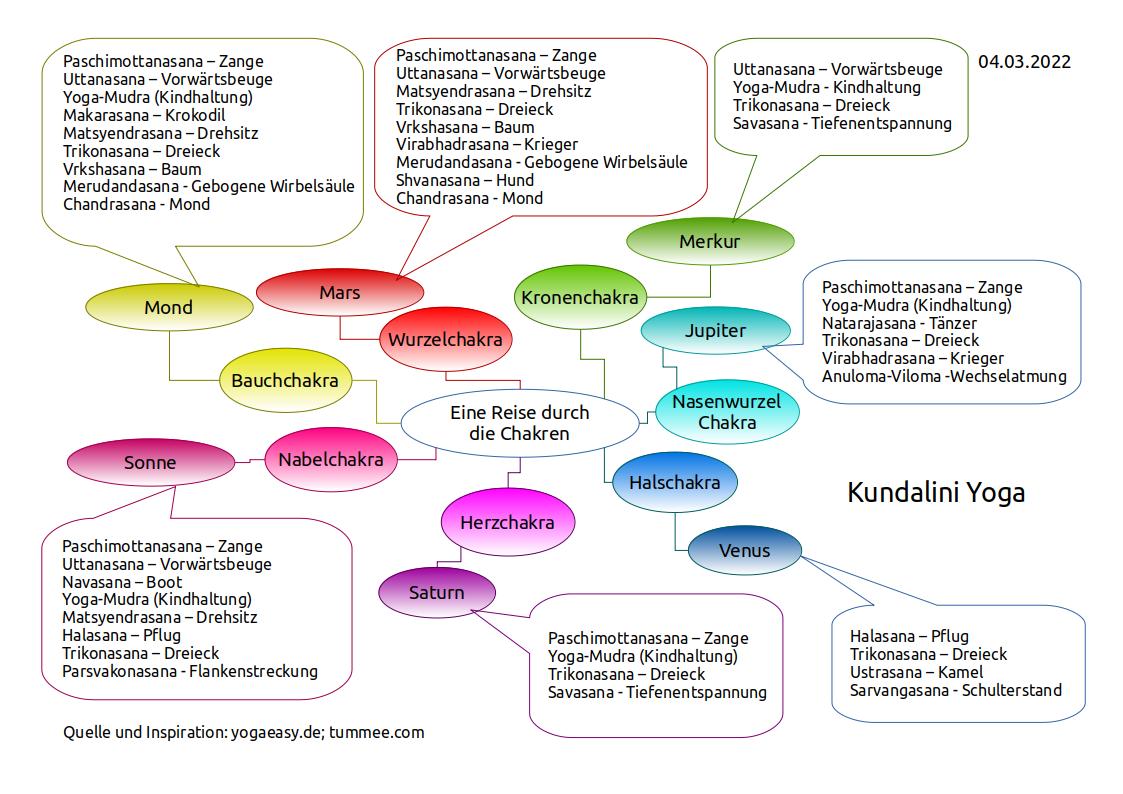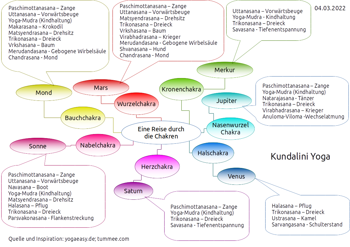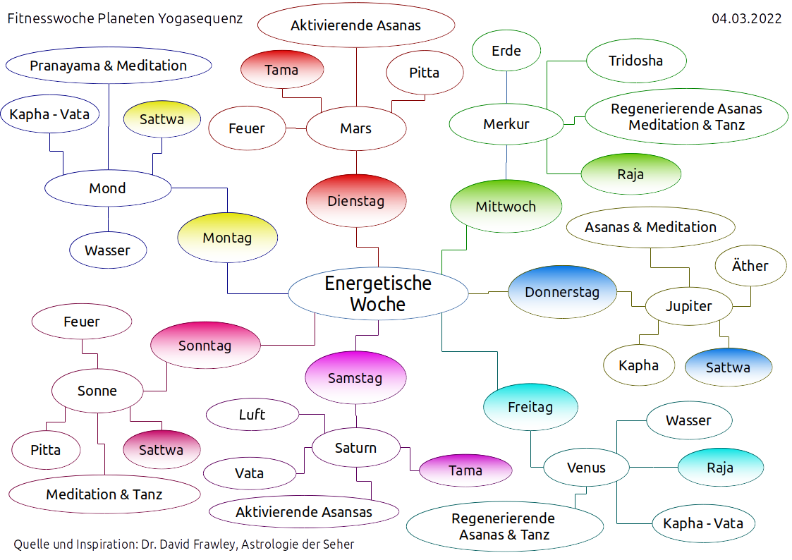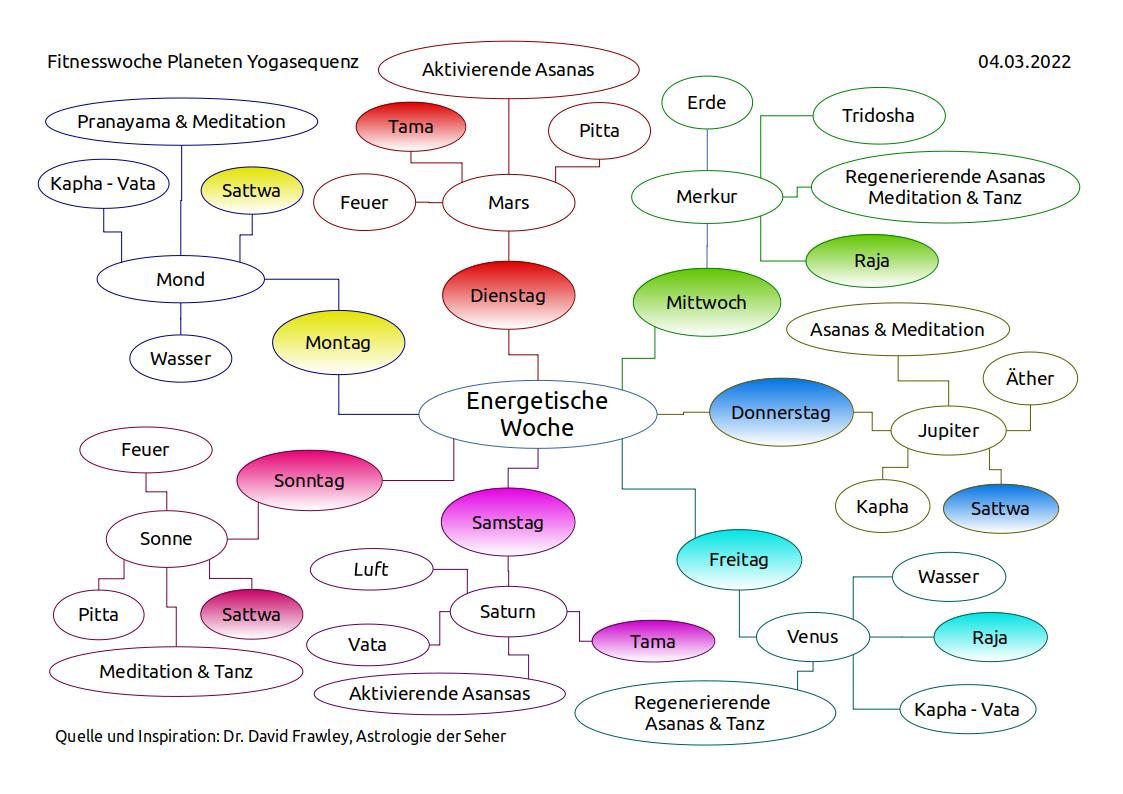 Asanas, Meditation, Pranayama und Tanz in Harmonie mit planetaren Einflüssen.